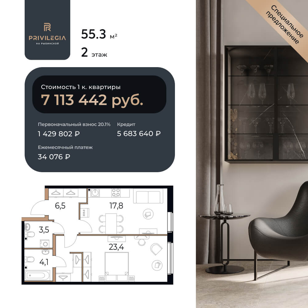 - Первоначальный взнос 20,1% 1 429 802 рублей