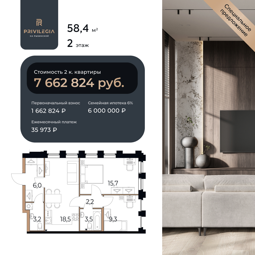 Квартира № 5, 2-й этаж, площадь 58,4 м.кв: