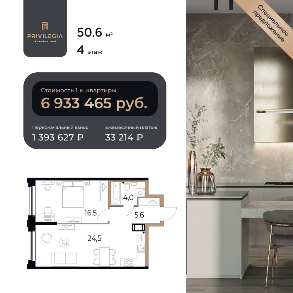Квартира 109, 4-й этаж, площадь 50.6 м.кв: