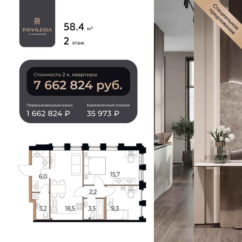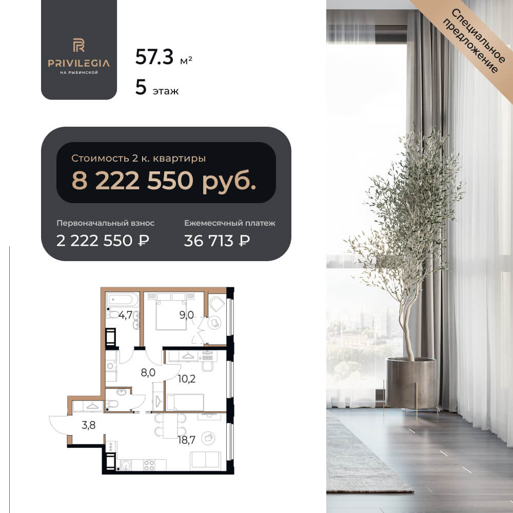 Квартира 118, 5-й этаж, площадь 57.3 м.кв: