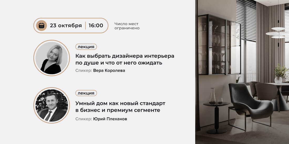 1. «Как выбрать дизайнера интерьера по душе и что от него ожидать», спикер — Вера Королева.