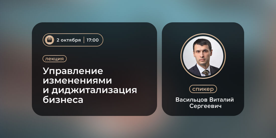 2 октября в 17:00 Васильцов Виталий Сергеевич проведет первую лекцию на тему «Управление изменениями и диджитализация бизнеса» из цикла лекций «Искусство эффективных сделок: финансы, банки и команда в одном курсе».